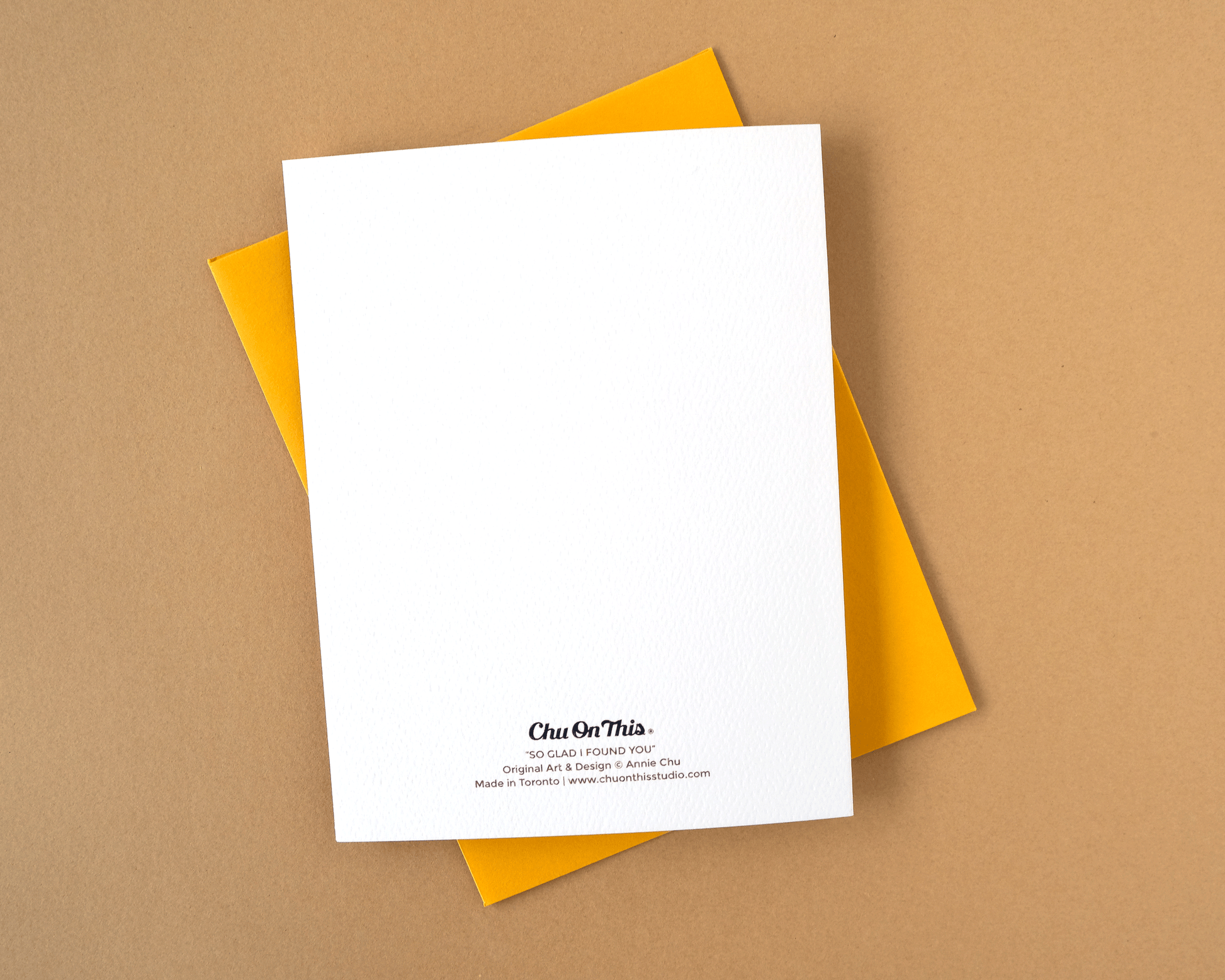 Design features original gouache mushroom illustrations by Annie Chu. Hand-lettering reads "so glad I found you”. Blank inside for your own message.