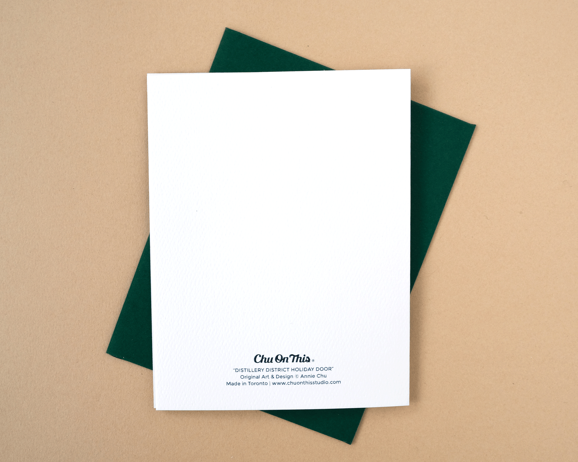 Design features original gouache illustration of a Distillery District inspired front door with a holiday wreath by Annie Chu. Blank inside for your own message.