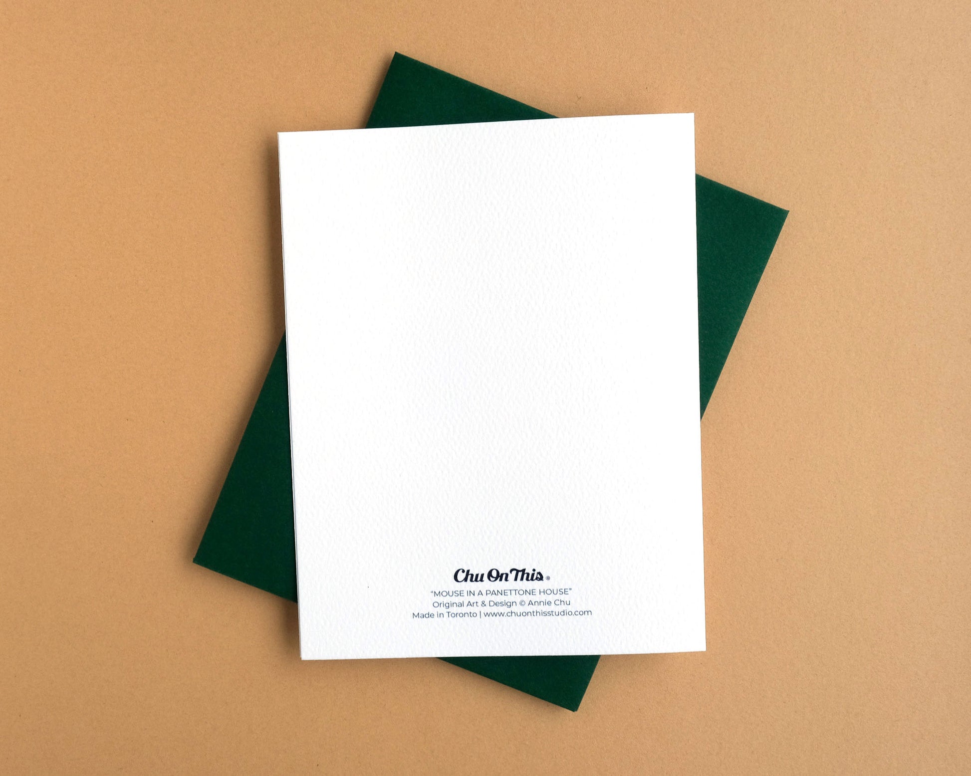 So many of us wait all year to indulge in some sweet and fluffy Italian Panettone, which also would double as a perfect cozy home for a little mouse. Purchase this card on its own, or as part of our "Holiday Party Animals" collection.